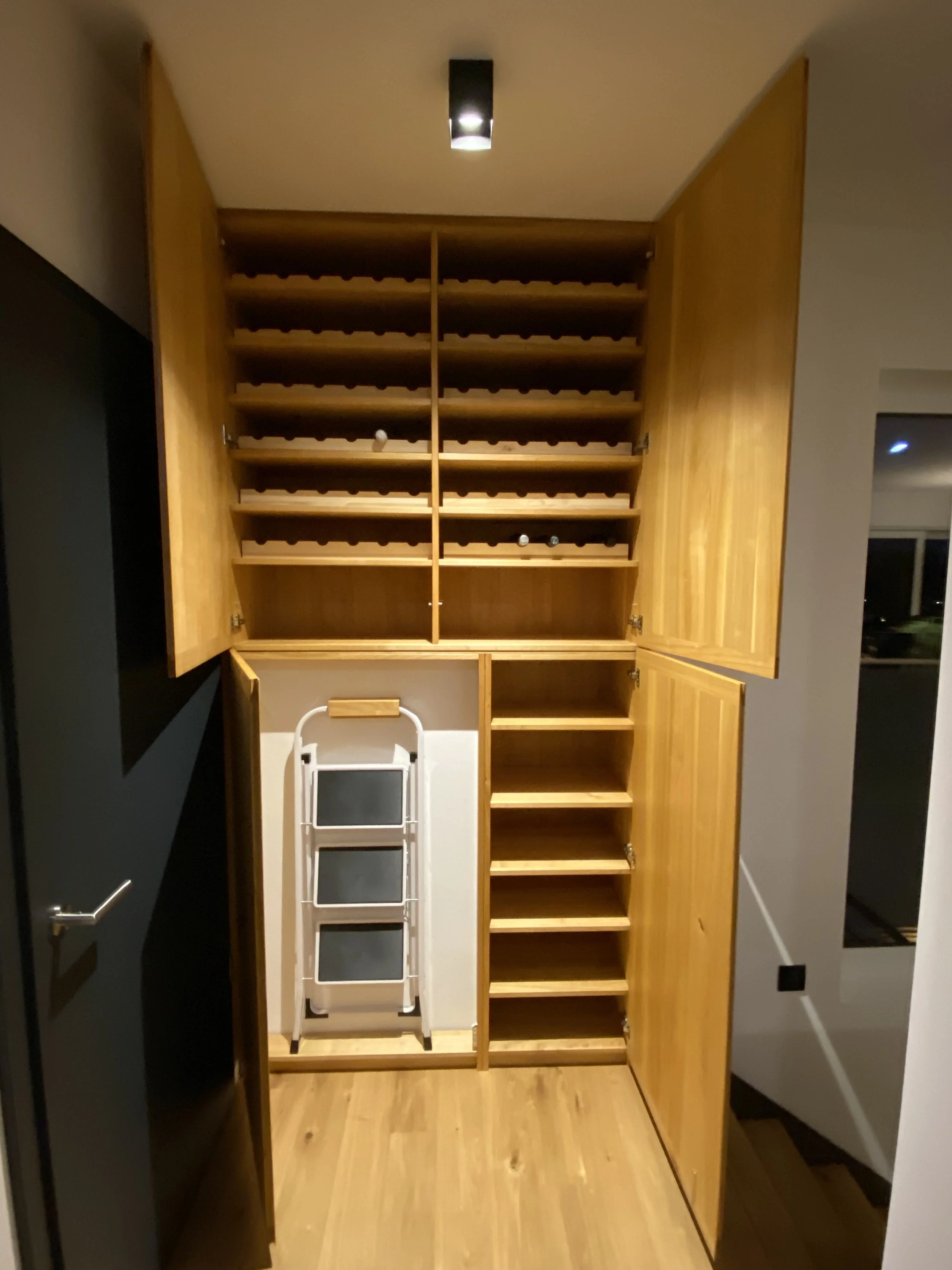 Gerne entwerfe und baue ich für Sie Schränke, die für jedes Bedürfniss individuell massgefertigt sind. Kleider, Schuhe, Haushaltsgegenstände oder Ihre guten Weinflaschen finden darin ihren angemessenen Platz.